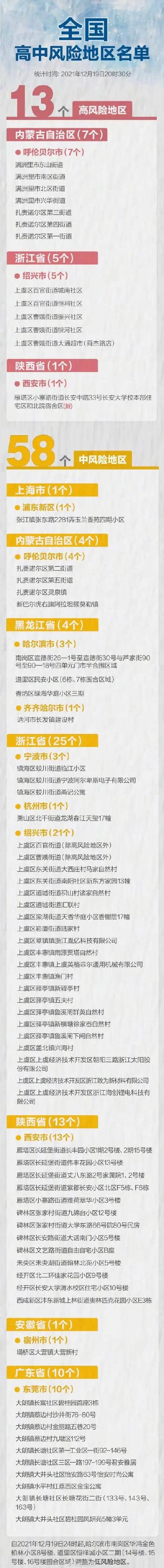 国家卫健委20日通报:12月19日0时至24时,31个省(自治区、直辖市)和新疆生产建设兵团报告新增新冠肺炎确诊病例102例,其中本土病例37例(陕西24例,其中西安市21例、延安市2例、咸阳市1例;浙江10例,其中绍兴市9例、杭州市1例;广东2例,均在东莞市;北京1例,在通州区)。新增无症状感染者33例,其中本土2例(云南1例,在德宏傣族景颇族自治州;陕西1例,在西安市)。目前,全国有高风险地区13个,中风险地区58个。