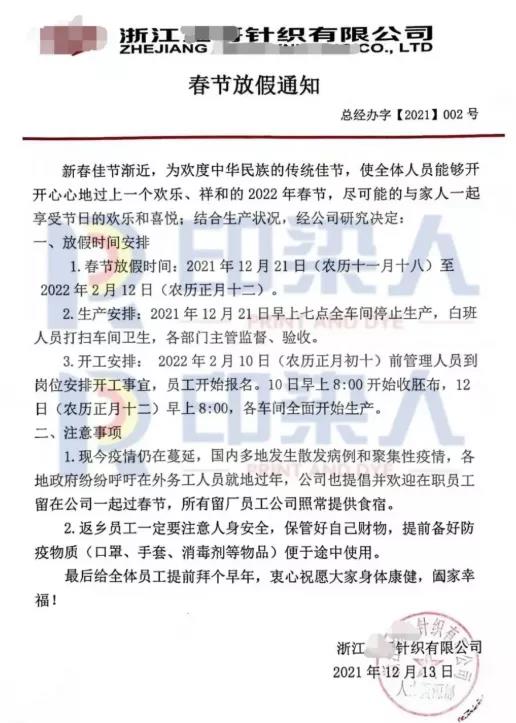 宁波某企业负责人表示,不是工厂不愿意开工,就像现在浙江宁波地区疫情乍现,工厂根本就没办法继续生产,甲方那边也不可能提供订单。与其让大量的工人在工厂里无事可做,倒不如提前给他们放假,也算是让他们尽快回家团聚了。
