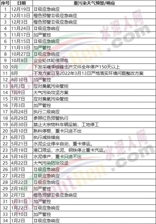 从上述管控措施来看,无论是加严管控还是直接发布橙色预警Ⅱ级应急响应,其管控要求均有关于水泥熟料、粉磨、商砼企业停限产,重卡物流限运或只进不出,下游工地停工等。