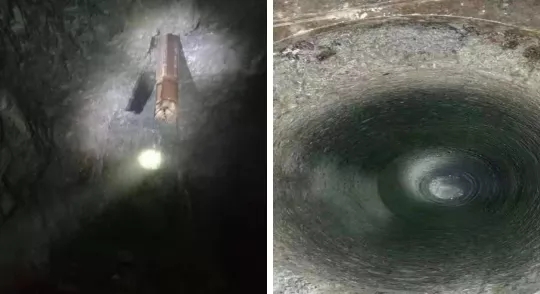 天井钻进导孔作业完成、天井钻机扩孔作业完成