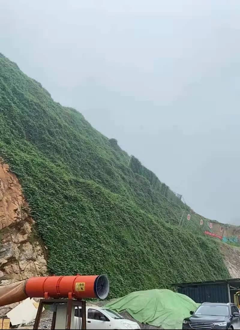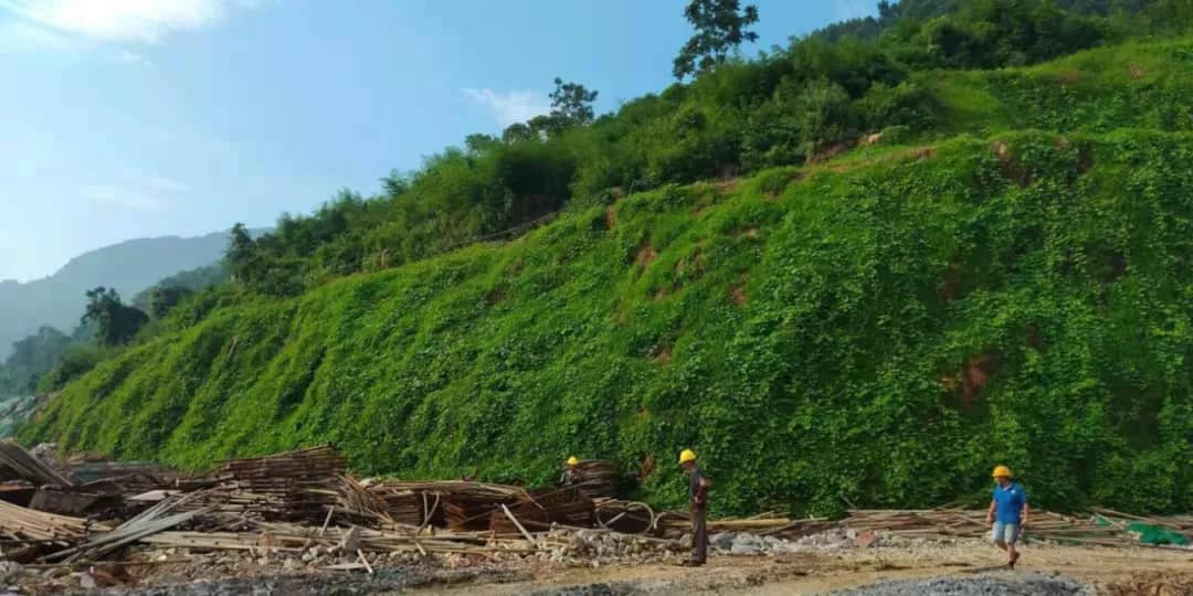加工区边坡均为岩质边坡,喷播效果差,给边坡生态修复带来了较大的困难。针对存在的困难,项目部制定专项施工方案,有效地提高了喷播的效果,得到了业主的一致好评。