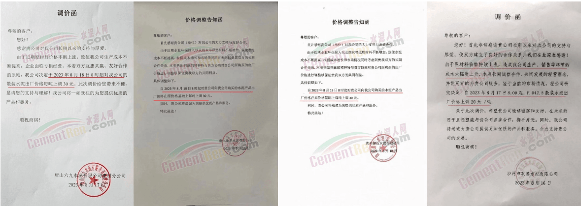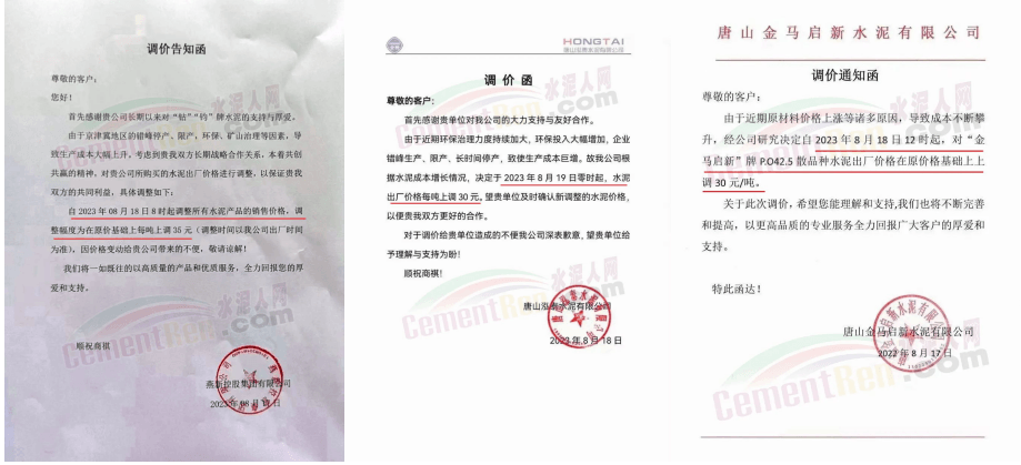 河南区域8月份以来已经分别于8月4日和11日前后连续两次上调报价,累计上调50-60元/吨,涉及当地包括天瑞水泥、中联水泥在内的数十家主要品牌企业。