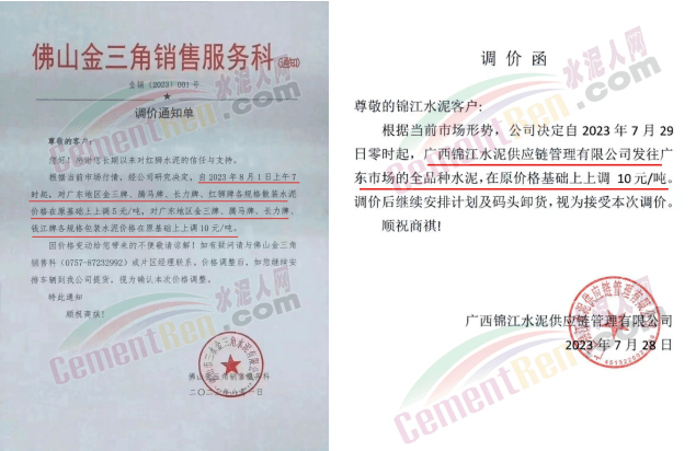 广东地区润丰牌、金三牌、腾马牌、长力牌、红狮牌通知上调报价5-30元/吨。广西锦象水泥对广西所有区域熟料价格上调10元/吨,52.5散装水泥价格上调5元/吨。