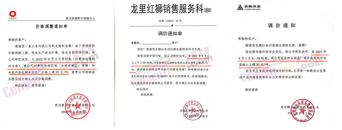贵州区域包括红狮、海螺、台泥等10多家企业宣布涨价